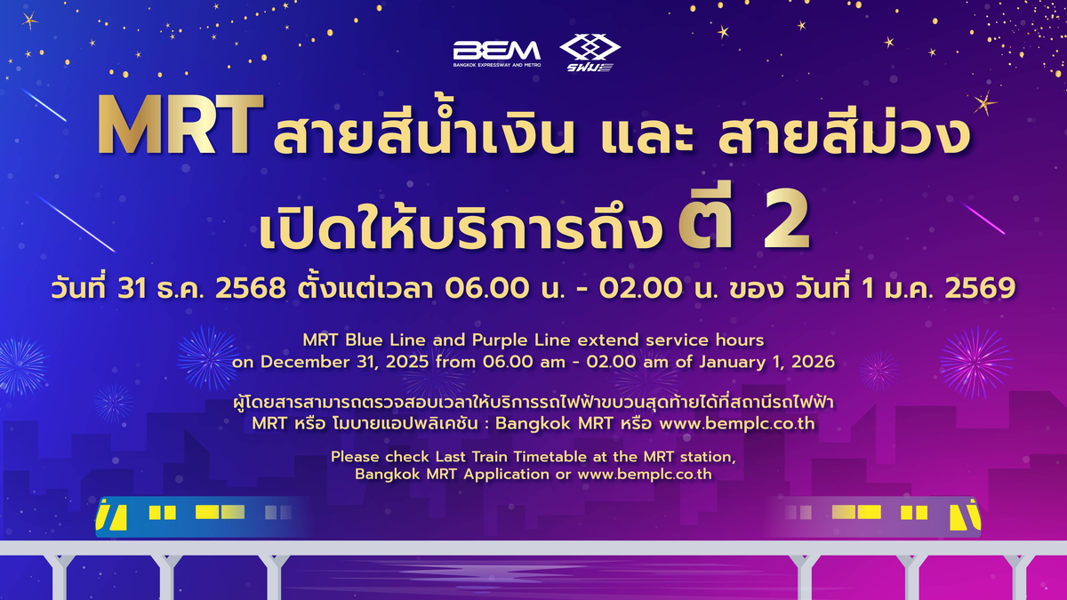 バンコク都市鉄道4路線、年越しに合わせ終電を午前2時まで延長 駐車場も深夜開放