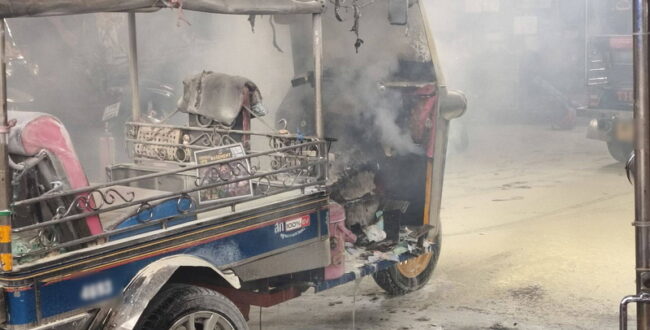 バンコク都心部の路上でトゥクトゥク炎上 人的被害なし