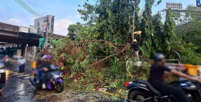 バンコク都心部の幹線道路で倒木 夜明けの豪雨で