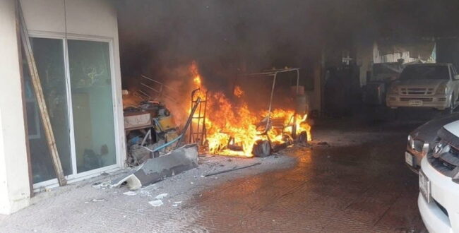 中部アユタヤではゴルフカートが燃える 自宅充電中に出火