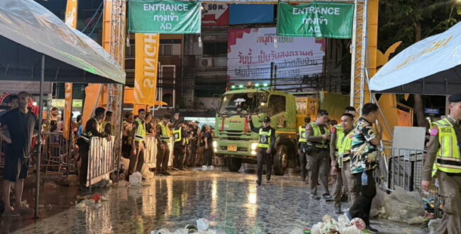 バンコク都庁、カーオサーン通りで後片づけ 水かけ祭りは15日夜10時まで