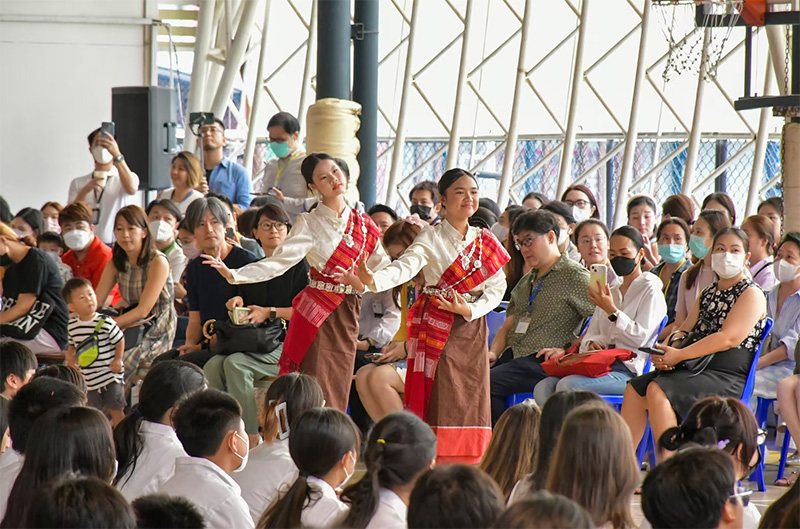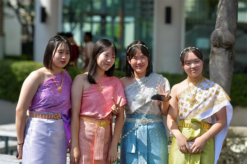 ソンクラーン(タイ新年):ソンクラーン休暇前に祝われます。子どもたちはソンクラーンの意味を学び、僧侶への托鉢などの功徳を積む活動に参加します。その後、タイの工芸や遊びを体験し、香り水を教師の手に注いで敬意を表す儀式を行います。式典の後は、生徒同士で水を掛け合い楽しみます。さらに、王室の重要性、仏教、音楽や舞踊、武術、民話など、タイの歴史や芸術の特定の側面についても学びます。