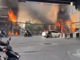 【タイ】バンコク都バーンカピ区内の道路で11月23日午前7時40分ごろ、電線がショートして火事となった。消防が駆け付けて消火にあたり、7時55分前には消し止めた。