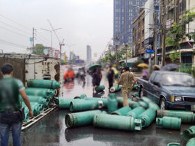 【タイ】バンコク都バーンプラット区内のシリントーン通り(下り方面)で3月16日正午すぎ、トラックが横転して積んであったガスボンベが路上に散乱する事故が起きた。人的被害は報告されていないが、周辺に渋滞を引き起こした。