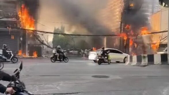 ぐちゃぐちゃ電線がまた燃える バンコクの幹線道路で
