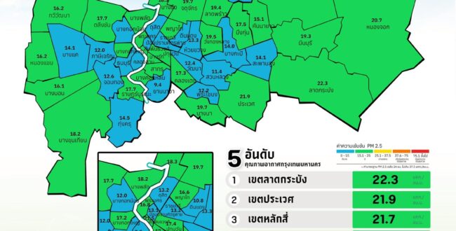 バンコクの大気状態良好、PM2.5の全区平均が16.4マイクログラム