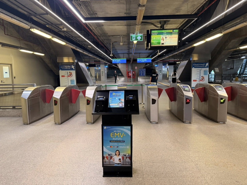 バンコク都市鉄道では地下鉄(MRT、パープルライン)などですでに、クレジットカードのタッチ決済で乗車ができる。