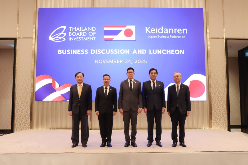 【タイ】タイ首相府は11月25日、エークニティ・ニティタンプラパート副首相兼財務相、タイ投資委員会(BOI)のナリット・タートサティーラサック事務局長らが、日本経済団体連合会(経団連)日タイ貿易経済委員会の石井敬太委員長、鈴木純委員長ら代表団を迎え、次世代産業や投資について話し合ったと発表した。協議は24日、バンコク都内のザ・リッツ・カールトンホテルで行われた。