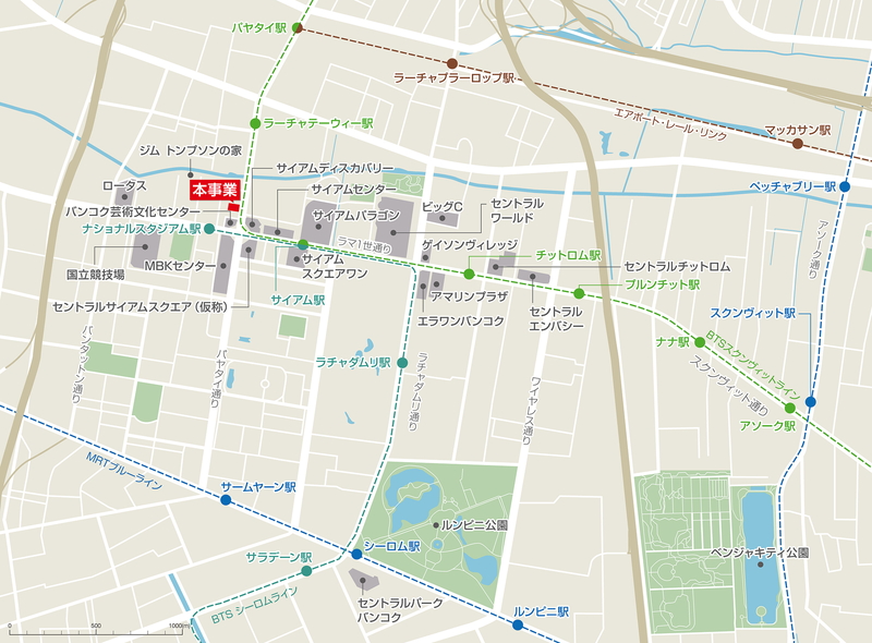 交通:BTSシーロム線「ナショナルスタジアム駅」徒歩3分、BTSスクムビット線・シーロム線「サイアム駅」徒歩7分、BTSスクムビット線「ラーチャテーウィー駅」徒歩8分