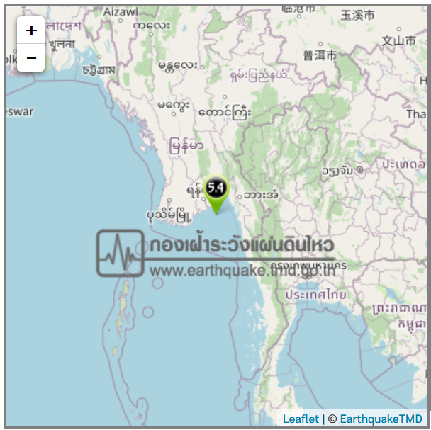 【タイ・ミャンマー】ミャンマー南部沿岸部で8月21日午前9時58分、マグニチュード5.4の地震が発生した。深さ10キロ。タイの首都バンコクもわずかに揺れた。現地の被害状況は伝わってきていない。