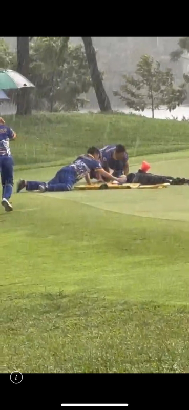 事故が起きたのは9月18日午後5時30分頃。ゴルファー4人とキャディ4人が17番ホールを回っていたとき、キャディの1人が落雷を受けた。事故を映した映像がSNSで拡散されており、豪雨の中で担架に乗せられるキャディは身動きせず意識がない状態だった。