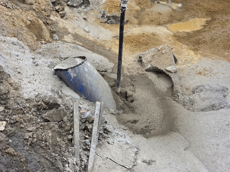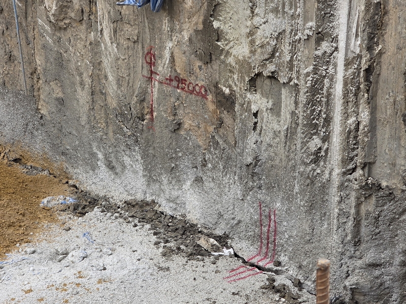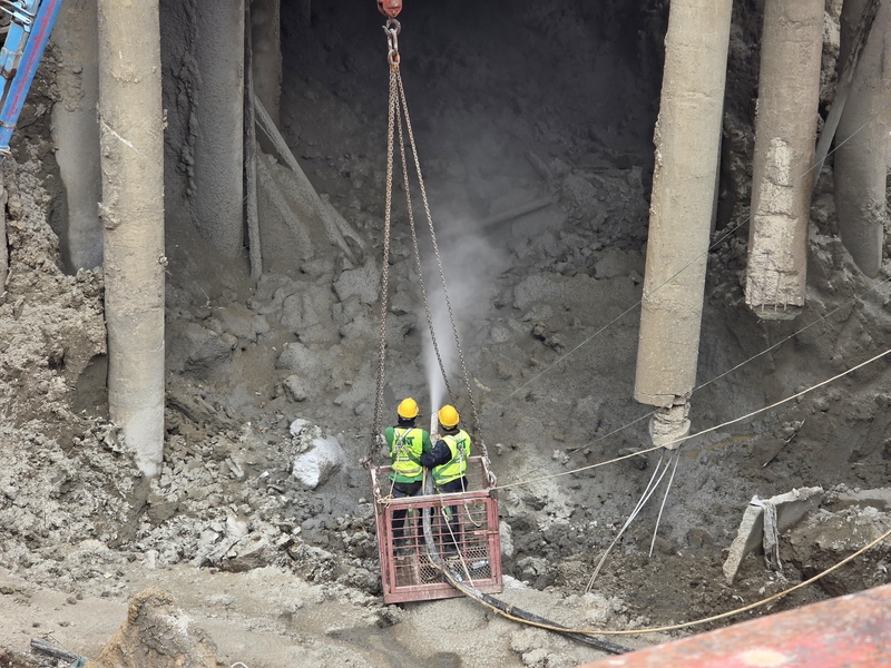 タイ電車公社(MRTA)が29日に障害物を撤去、30日にモルタルを投入する作業を開始した。しかし、水道管付近と警察署の建物に隣接する壁際で、2カ所の空洞が見つかった。コンクリートの収縮やひび割れが原因とみられる。
