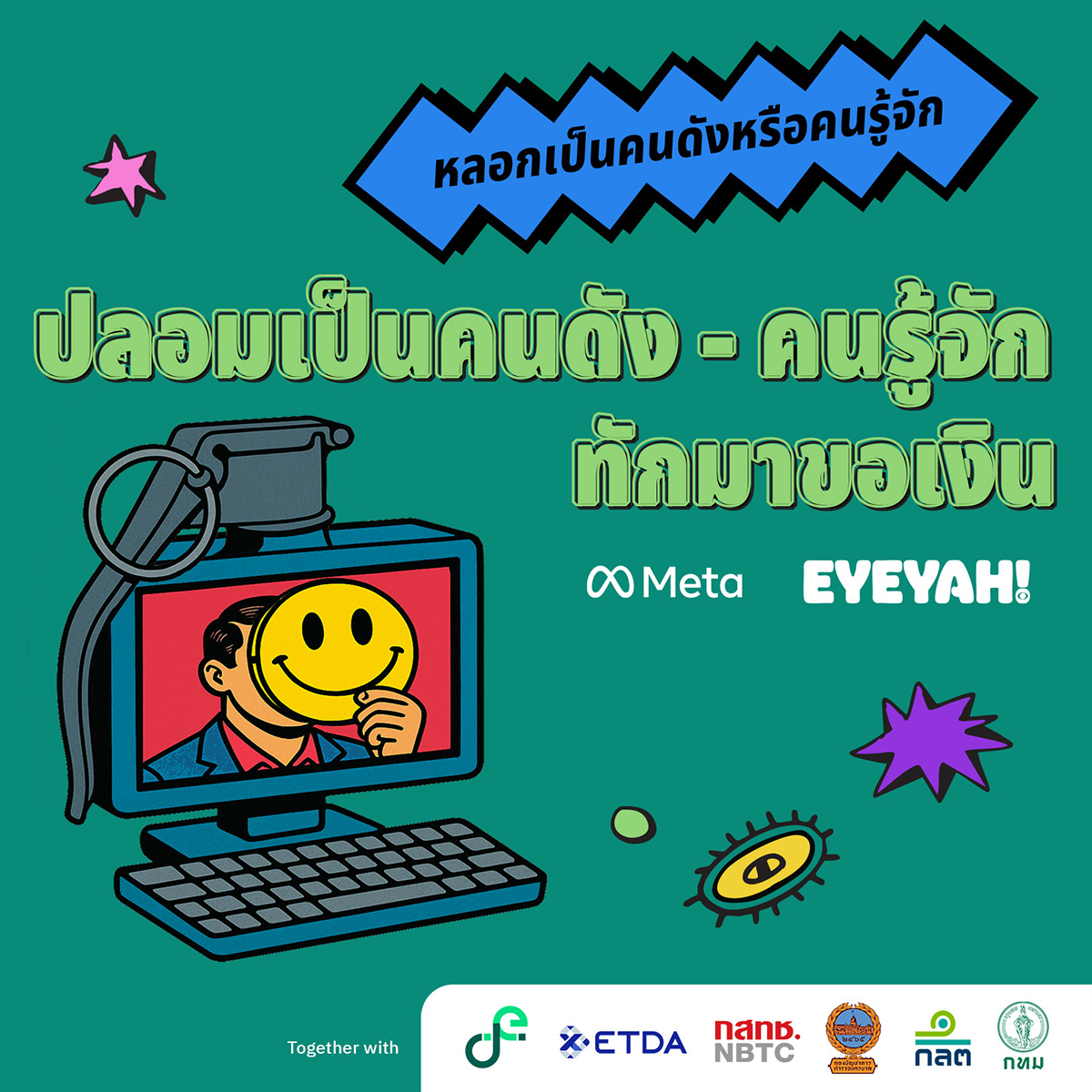 BMA、デジタル経済社会省、バンコク首都警察、タイ国家放送通信委員会(NBTC)、タイ電子取引開発庁(ETDA)、証券取引委員会(SEC)、META連携によるオンライン詐欺対策キャンペーン「Is This Legit?」。ゲームでスキャマーの手口を学べます。コツや最新情報はMeta タイとバンコク都庁の公式ページで随時発信中」。