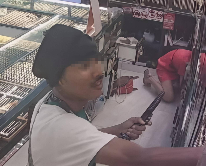 事件は金行チェーン店で知られる「ヤワラート・バンコク」のバーンプリー支店で発生。カンボジア人は拳銃で従業員を脅し、金のネックレス数点を奪って逃走した。警察がただちに捜査の乗り出し、カンボジア国籍だと突き止めた。