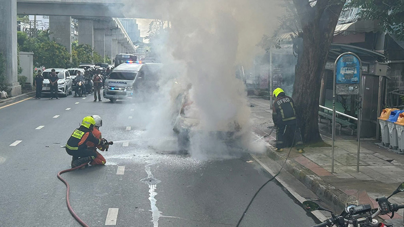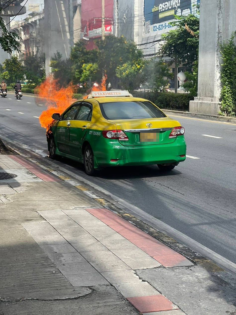 【タイ】バンコク都バーンカピ区ラープラオ通りソイ130で11月2日午前10時5分過ぎ、走行中のメーター・タクシーが炎上する事故が発生した。ドライバーは道路わきに停車した後に避難し、無事だった。