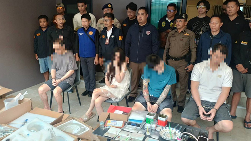 【タイ】タイ警察は11月1日、東部チョンブリー県バーンラムン郡で、違法薬物使用の現行犯で外国人4人を逮捕したと発表した。バーンラムン郡はパッタヤー(パタヤ)市と重複する行政区で、外国人らは高級住宅2軒で自ら製造も行っていたもよう。