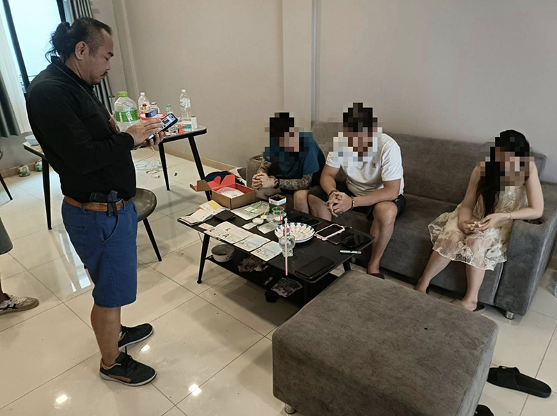 最初の1軒では、中国人2人がベトナム人(女)1人に注射をしているところだった。隣のもう1軒ではマレーシア人1人が薬物をトイレに流して証拠隠滅を図っていたという。2軒からは、アイス(結晶状メタンフェタミン)500グラム、ケタミン50グラム、Pod K(ケタミン混合電子タバコ)、使用器具などが見つかった。