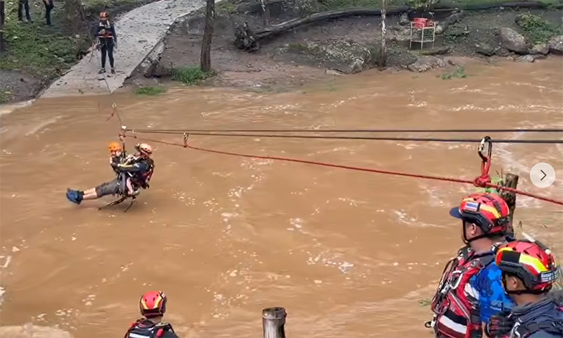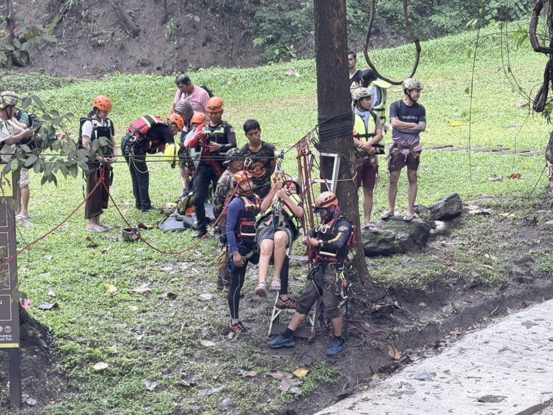 メーティア滝を管轄するオープルアン国立公園は午前10時ごろ、観光客が取り残されて50人態勢のレスキュー隊が出動したとフェイスブックに投稿した。レスキュー隊はジップラインを使って観光客を1人ずつ救助し、午後2時までに作業を終えた。