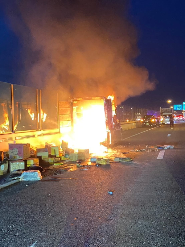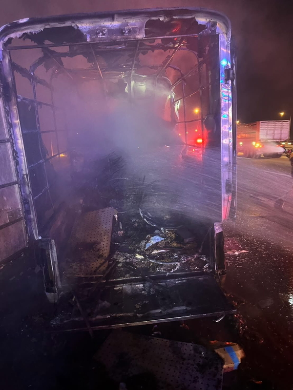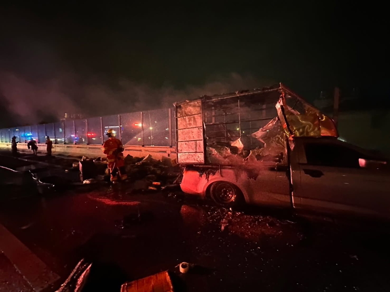 現場は、ラートクラバン通りとスワンナプーム空港への高架橋が交わる地点。積んでいた荷物から火が出て、車体後部に燃え広がった。管轄はラートクラバン消防署だったが、スワンナプーム空港からの消防隊が駆け付けて火を消し止めた。