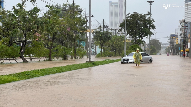 雨は過去3日間で計544ミリを記録。貯水池での放水が余儀なくされ、排水能力を超える水量が市街地の水路に流れ込み、そのままあふれ出で一気に冠水した。ハジャイ当局は11月21日午後10時、第1区28地区、第2区29地区、第3区8地区の計65地区を対象に非常事態を宣言。住民の家財道具を伴う高台への避難を指示した。