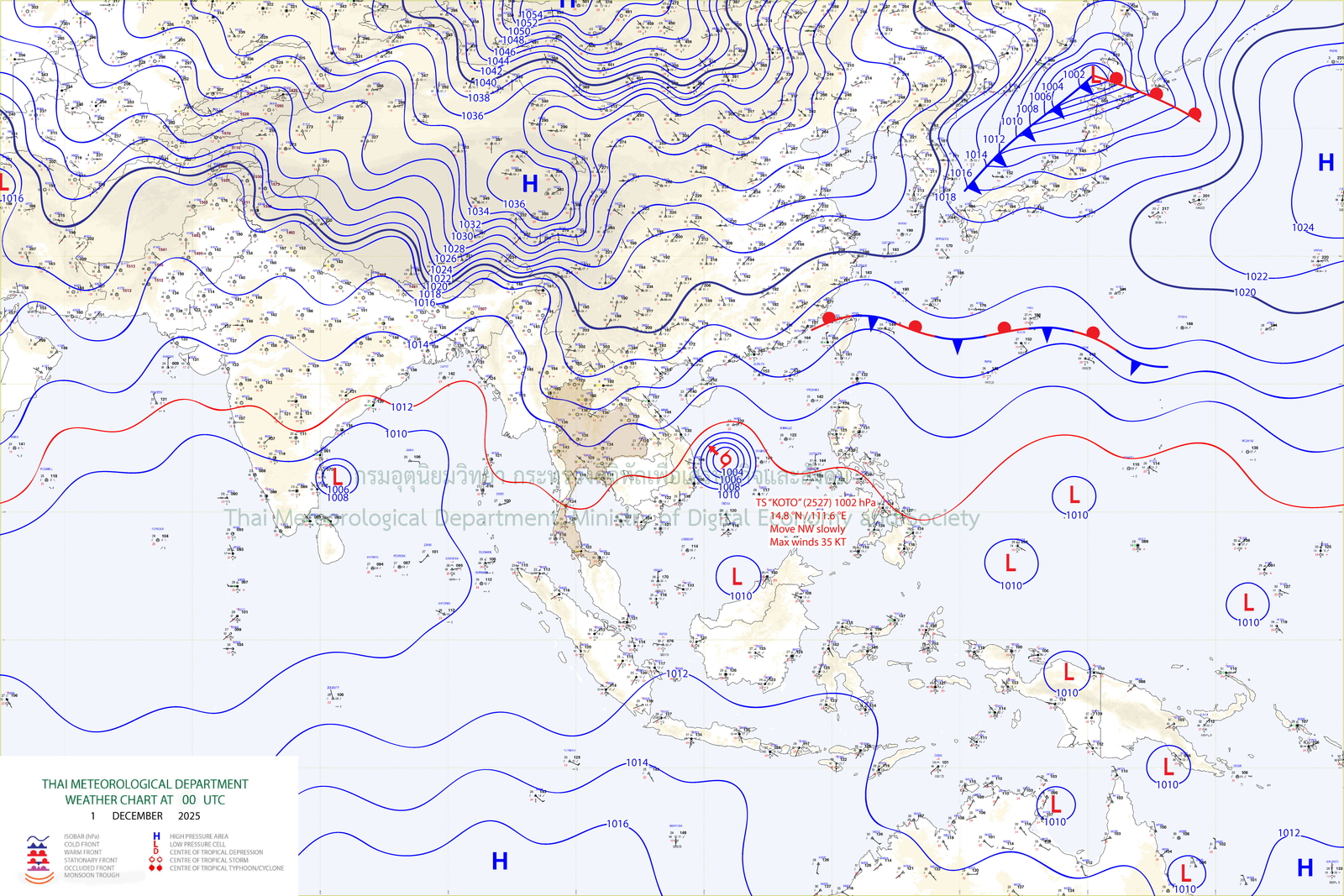 【タイ】タイ気象庁によると、台風27号(コト)は12月1日午前4時(現地時間)現在、はベトナム・ビンディン省に位置し、勢力を弱めながらベトナム沿岸に接近して3日には熱帯低気圧に変わる。タイへの影響はほとんどないとみられる。
