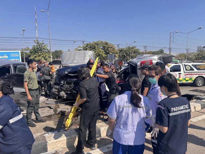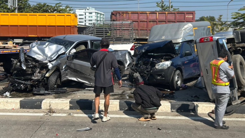 【タイ】タイ中部ナコーン・パトム県ナコーン・パトム市内のペットカセーム通り(国道4号線)で12月2日、走行中のトレーラーが中央分離帯を越えて対向車線に突入し、ピックアップトラック3台に衝突する事故が発生した。現場に居合わせた地元警察がただちに救出活動を開始したが、2人が死亡、2人が重傷を負った。