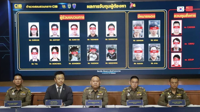 摘発は在タイ韓国大使館の協力によって実現した。容疑者らはカンボジアに拠点を置いてタイで活動。ルムピニー公園界隈やラマ3世通り界隈のコンドミニアムを借り、VoIP(IP)電話を使って検察官や公務員を装って「事件に関与している」と脅し、送金を迫っていた。「捜索」と称して通話の相手を脱がせるなど行為も押収した映像に映っていたという。