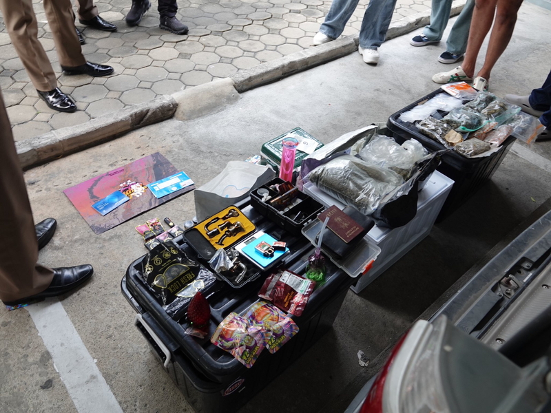 家宅捜索では大麻製品および樹脂、自作の広告、現金およそ20万バーツ(100万円相当)、パソコン、スマホ、銀行通帳など多数が押収された。警察は国民に対し、薬物に関する情報提供をホットライン「191」「1386」「1599」もしくは最寄りの警察署への通報を呼びかけている。