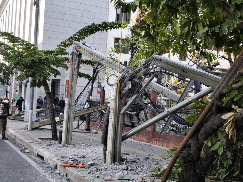 【タイ】バンコク都チャトゥチャック区内のパホンヨーティン通りで12月29日午前、走行中のコンクリートミキサー車が電柱に接触し、引きずられた電柱5本が倒壊する事故が起きた。これにより周辺地域で停電が発生し、正午時点で全面復旧に至っていない。
