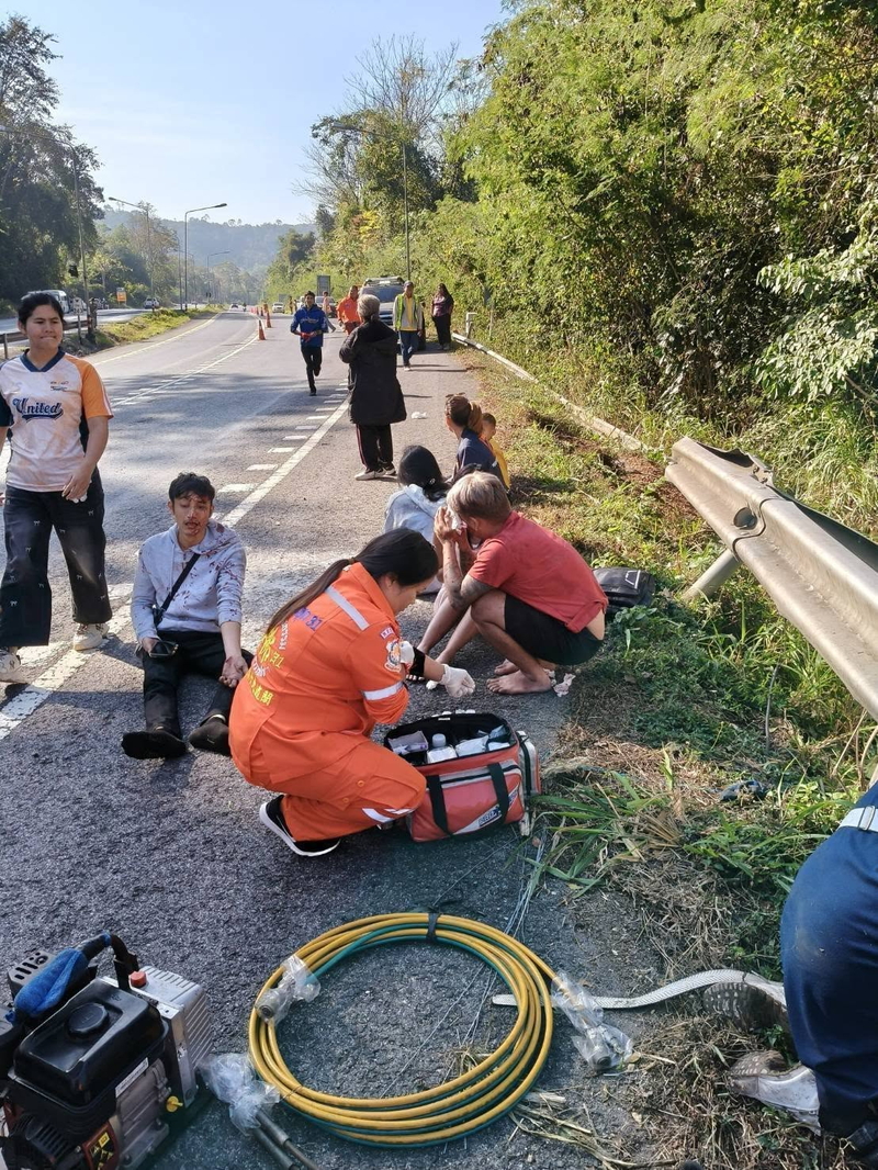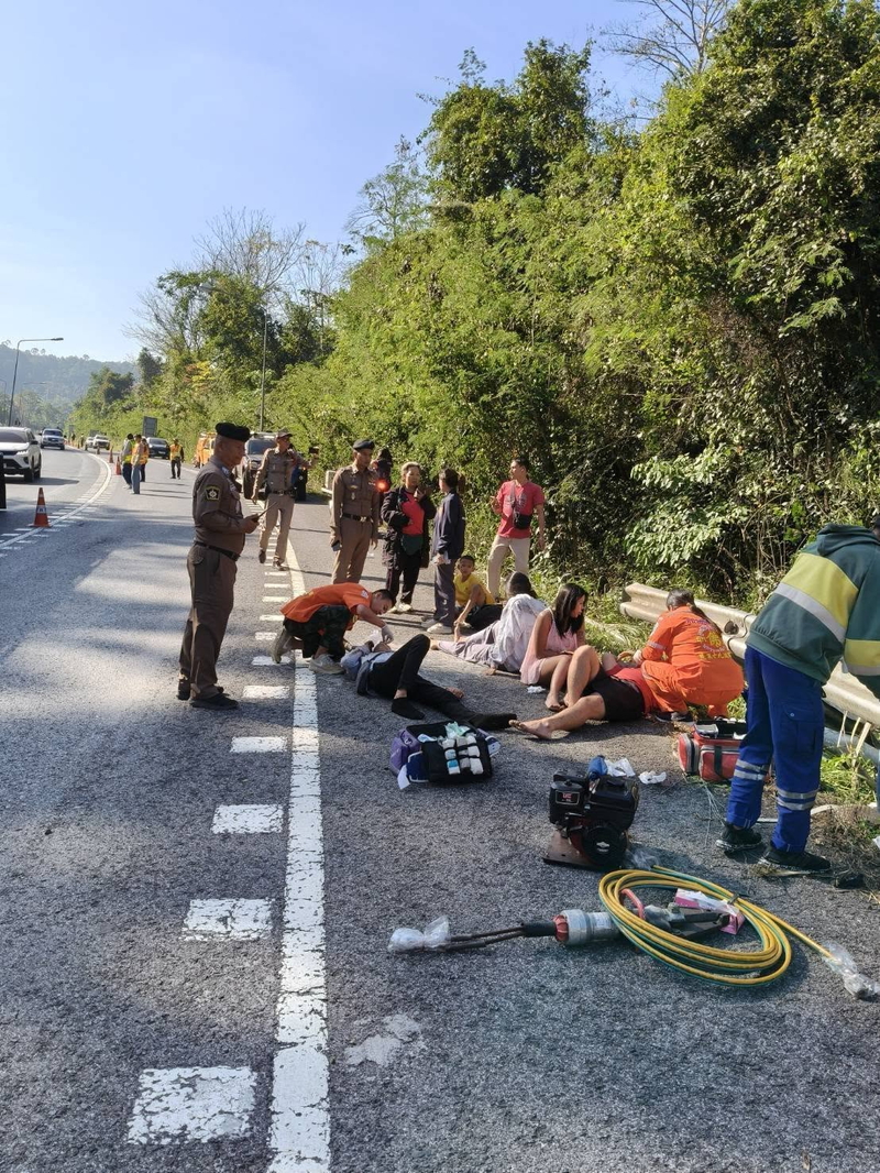 現場は国道304号線のナコーン・ラーチャシーマー方面に向かう下り坂のカーブ。バンはハンドル操作を誤り、道路わきのガードレールに衝突した後、路肩下に転落した。乗客2人が車体の下敷きとなり、その場で死亡が確認された。けが人14人のうち4人は車内に閉じ込められたが、駆け付けたレスキュー隊が油圧カッターなどを用いて車体を切断して救出した。
