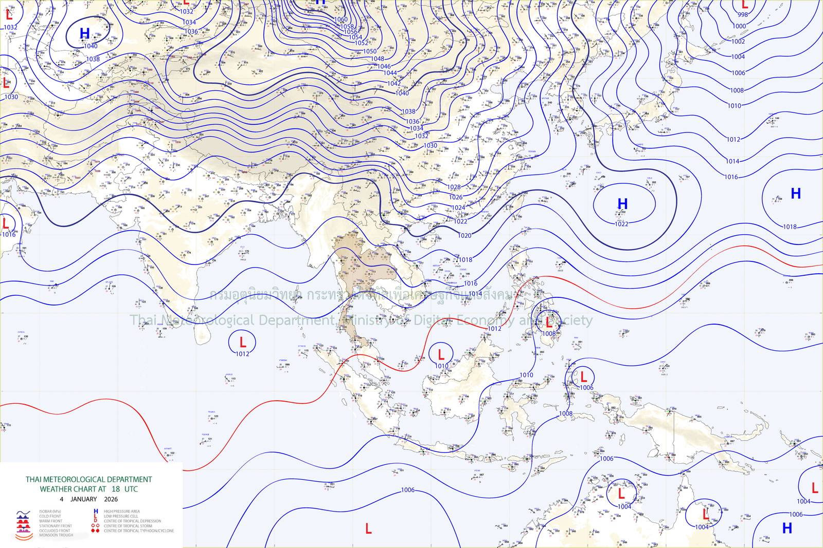 【タイ】タイ気象庁によると、中国大陸から張り出すやや強い高気圧の影響で、6日から10日にかけてタイ北部一帯と南シナ海周辺で冷え込み、風が強くなる。バンコク首都圏を含む中部南部では、朝方を中心に20度ほどまで下がる涼しい気温となる。
