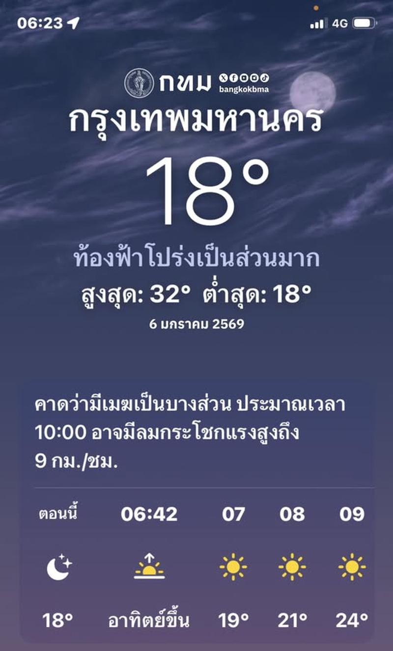 【タイ】バンコク都庁(BMA)によると、1月6日のバンコクは朝6時23分の時点で、気温が18度まで低下した。BMAは都民に対し、「冷え込みへの対策」を呼びかけている。