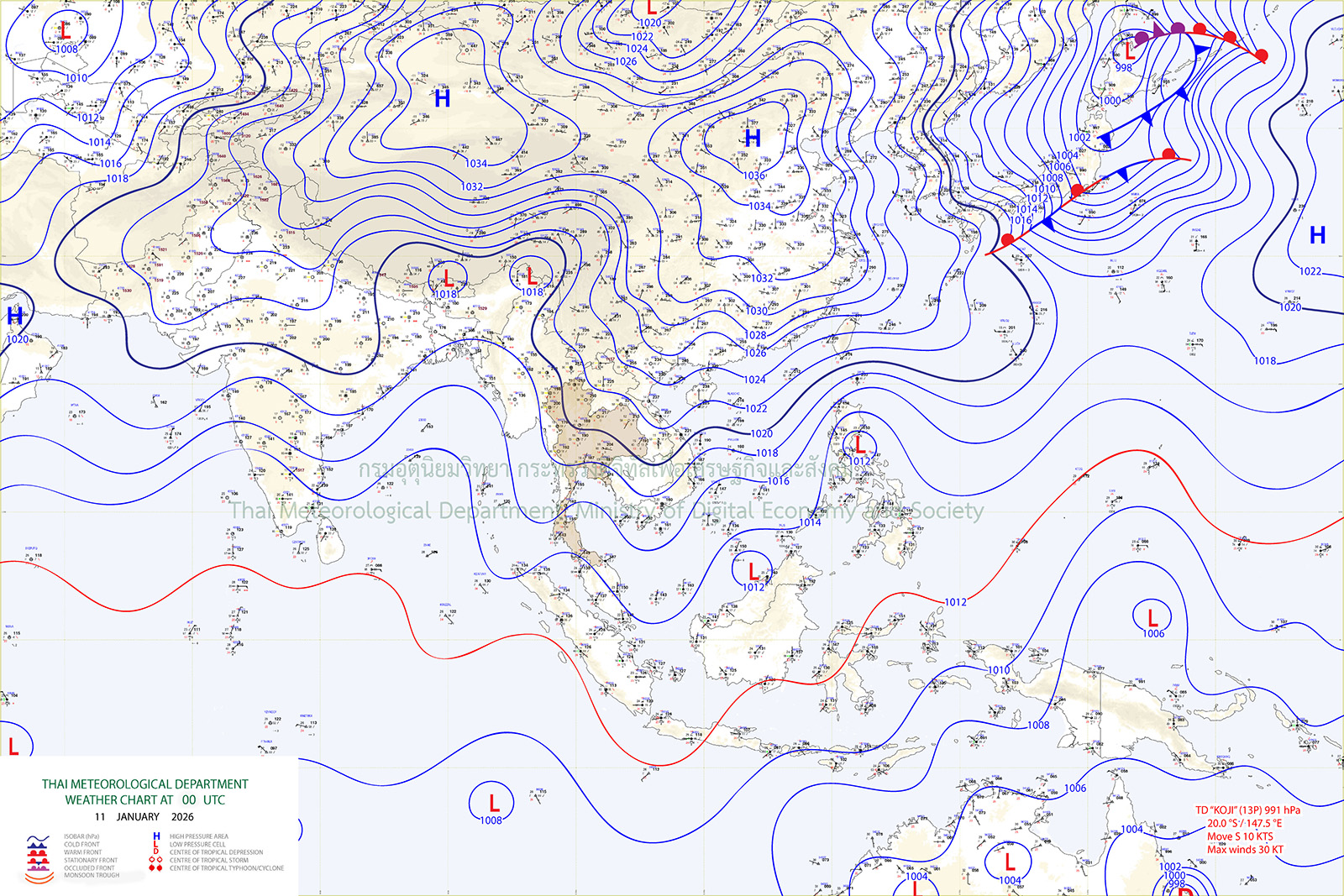 2026年1月11日発表の天気図 画像:タイ気象庁