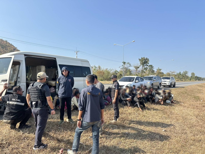 不法入国者を扱う組織を追跡していた警察が、カーンジャナブリー市内の国道323号線で不審なバンを発見。停止を命じたところ、車内にミャンマー人を発見したという。成人の男性26人および女性17人と子ども5人の48人で、いずれも身分証明書を所持していなかった。バンを運転していたのはタイ人の男(40)で、指示された場所に送り届ける役目だった。