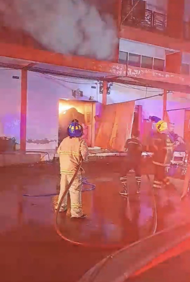 消防は午後10時ごろ現場に到着、10時25分には火をほぼ消し止めた。建物は3階建てで、1階がほぼ全焼、2階にも燃え広がっていた。電気コンセントがショートして保管してあった衣料品に引火したものとみられている。