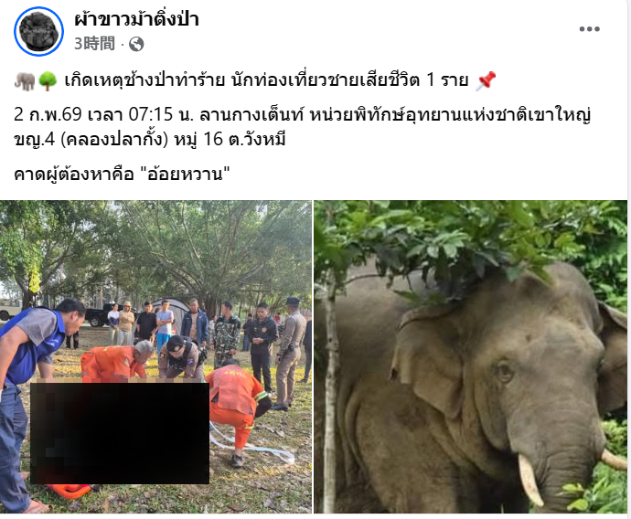 【タイ】東北部ナコーン・ラーチャシーマー県のカオヤイ国立公園で2月2日午前5時半ごろ、キャンプ場に滞在していた男性(69)が野生の雄ゾウに襲われ死亡した。ゾウは発情期に入っており、これまでに地元住民2人を死なせているという。
