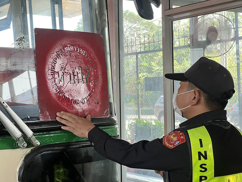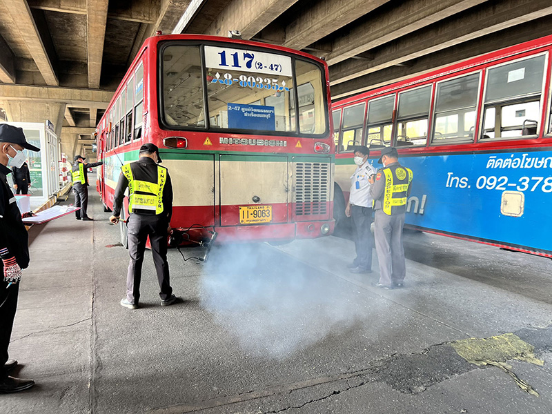 微小粒子状物質(PM2.5)による大気汚染を抑制する目的で行われたもので、都庁環境局、区役所、運輸省陸運局、天然資源環境省公害管理局、交通警察、バンコク大量輸送公社(BMTA)などの関係機関が合同で実施した。対象となった路線バス21台のうち、17台は黒煙濃度が基準値の20%以下を満たしていたが、4台は基準を超過していた。陸運局が直ちに「使用禁止」の表示を行い、修理後に再度検査を行うと説明した。