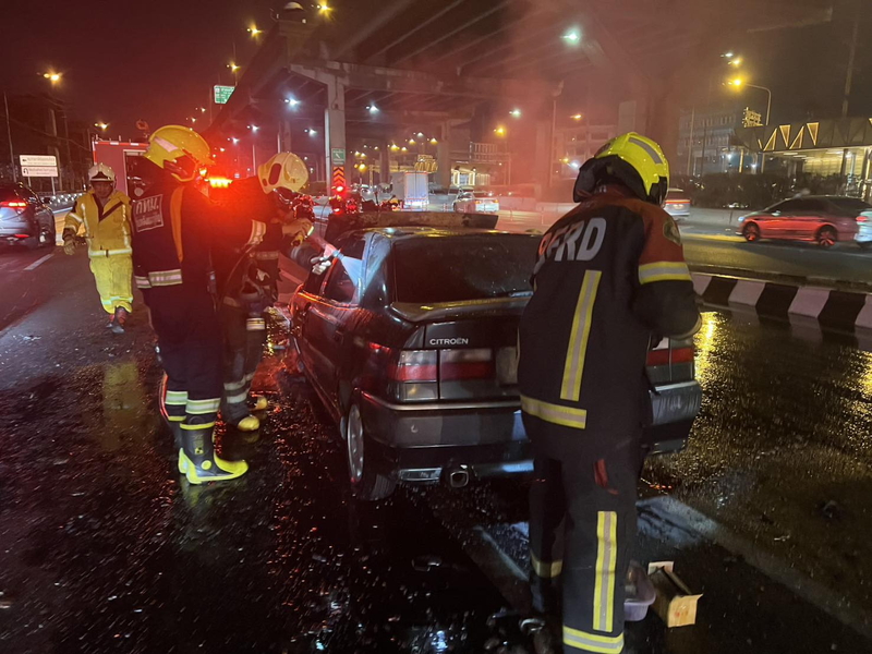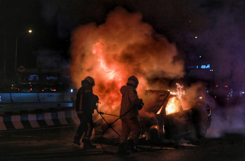 現場はドーンムアン空港近くのラクシー交差点。下り車線を走行中のシトロエン車から火が出た。燃料としてガソリンとLPG(液化石油ガス)を併用しており、エンジンルーム内の電気系統のショートで、引火したものとみられる。