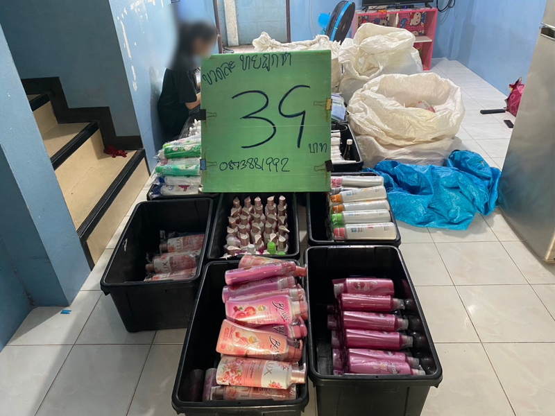 西部カーンチャナーブリー県内の露店市場で偽シャンプーが出回っているとの情報を受け、警察が捜査に乗り出した。流通経路を追跡して男の自宅を突き止め、家宅捜査で身柄を拘束。複数の有名ブランドのシャンプー容器のほか、自家製のシャンプー原液、かき混ぜ用の棒などを押収した。