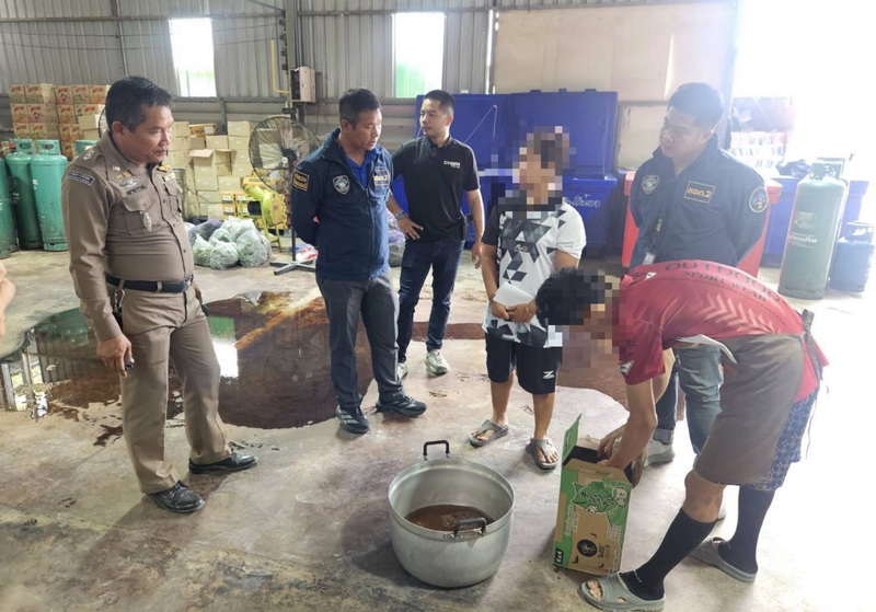 工場は住宅街の中にあり、リサイクル業を装った看板を掲げ、高い塀で囲って外部から見えないようにしていた。逮捕されたタイ人の1人は、経営者と思われる「ジェー」と名乗る人物の指示で、1カ月前から24時間体制でクラトーム水を製造し、月給1万8000バーツを受け取ったと供述している。クラトーム水は工場から店舗に配送され、1本35バーツで1日平均4000本が販売されていたという。