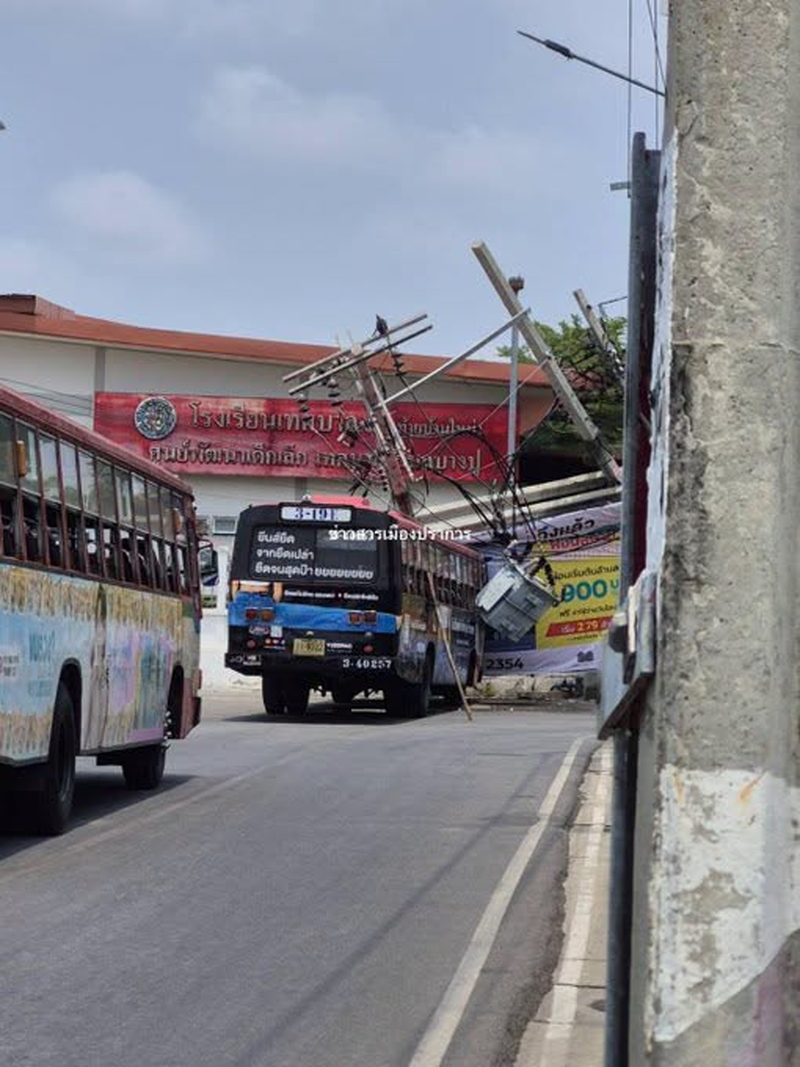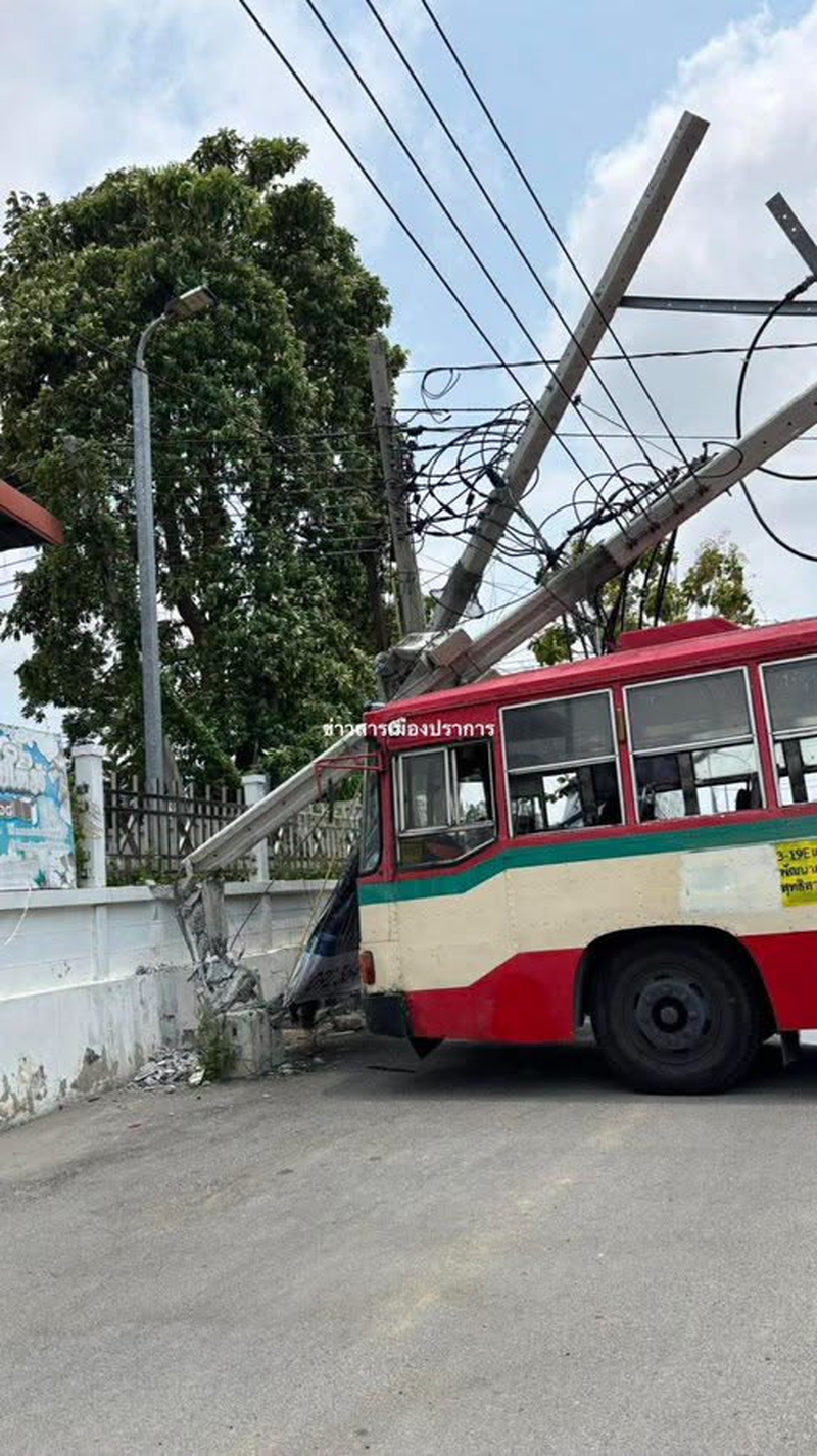 【タイ】バンコク東郊サムット・プラーカーン県サムット・プラーカーン市で4月19日正午前、路線バスが電柱に衝突する事故が発生した。電柱が折損し、周辺一帯が停電している。