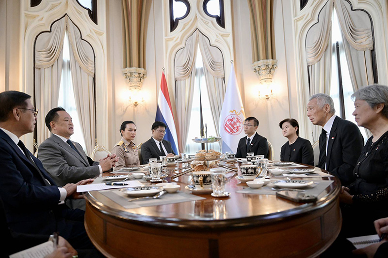 【タイ】アヌティン・チャーンウィーラクーン首相は11月4日、シンガポールのリー・シェンロン前首相を首相府に迎え、茶会を開いて応接した。リー前首相はシリキット王太后の死去に伴い、弔意を表するために来訪した。